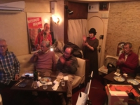 宴会はいつものとおり、松本じゅうの酒という酒が無くなるのでは・・という勢い。温泉につかりながらの話も、時節がら不景気な話題がないわけではありませんが、再会した旧友との一夜はひたすら楽しく更けてゆきました。この会が恒例行事としておこなう「修学旅行やり直し」イベントは近年は遠く海外にまで遠征する勢い。幹事の怪しい企てはとどまることを知らないのでした。