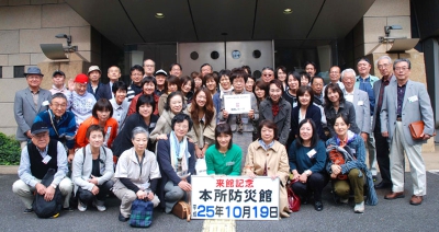 今年度の縣陵レディースの行事「墨田区体感ツアー~防災体験&スカイツリー」が、10月19日(土)に無事終了いたしました。心配された当日の天気予報は、午後からは雨模様。しかし、何とか曇り空ながらも一日天気はもって、スカイツリーからは、東京の街並みが遠くまで見渡せました。