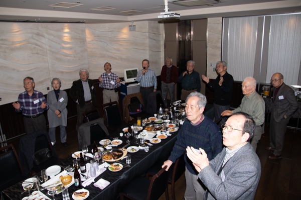 その後は、一人2分のスピーチをお願いした。それぞれが歩んだ思い出や現在の活動状況と多岐にわたる話で盛り上がり、適宜質疑もある中和気藹々の楽しいひと時を送った。誰かれなく、病気の話が多く、昨年すい臓がんの手術をした小穴勝氏は、漢字一文字で表すと昨年の世評は「災」自分は「病」でした、今年は「健」として全てに健康を求めると熱く語る。癌、白血病、心臓、糖尿、透析等色々な病気を経験しており、まだ治療中の者も、それぞれの体験談にみんな真剣に耳を傾けている様子が感じられた。