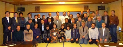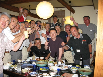 宴会の話題は年齢にあった病気対策、健康対策話を皮切りに、談合ができなくなった営業マンが暇になった話や、リストラの為に自ら徹夜をするも無理ができなくなった大企業の中間幹部社員の悲哀、コンプライアンス等の社会情勢と経済情勢と続き、最後は某JR管理職から「女子高生3人組による偽装痴漢のオヤジ狩り」に注意するようにとの事例紹介があり、オヤジ一同、「電車では両手を吊革に」を合言葉に閉会となりました。久し振りに青春時代を振り返るひと時でした。(竹野入)