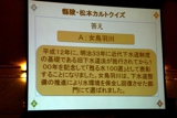 4月に母校で行われた愛のリレーの報告、レディスの活動報告、来年予定される大縣陵祭の案内などをはさみ、今回のアトラクションの目玉の一つ、松本・縣陵カルトクイズが始まりました。縣陵の事なら何でも知っている、とたかをくくっていたところが、はじめから難問奇問のオンパレード。テーブル対抗戦は非常に盛り上がりました。テーブル同席者のつながりを巧みにいかしての情報戦となりました。