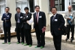 祝賀会までのわずかな時間は、ウッドデッキでの記念撮影。プレートの前に集まったり、恩師をかこんだり、思い思いに写真におさまる29回生のみなさんでした。