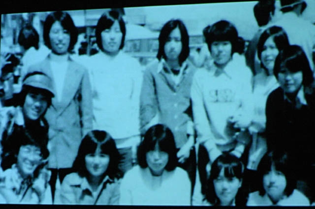 ひとり1キロの映像の前後には現役のみなさんの将来の夢や希望も紹介。つきたい仕事、行ってみたい場所など。「愛する人を守りたい!」という女生徒もいて、それは頼もしいこと。リレー映像は家族の協力をあおいだり、各クラスごと、職場の縣陵出身者、クラブの仲間と一緒になど、申し合わせて集まって収録したりしたもの。そしてもちろん東京同窓会のメンバーでも連絡を取り合って撮影されました。バックに流れる曲は当時のヒットメドレー。