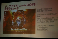 「未知との遭遇」や「スターウォーズ」でとりこになったSF映画を自らの手で制作したのがデビュー作「ジュブナイル」。「三丁目の夕日」は当初あまり乗り気ではなかった企画だったものの大成功を納め、監督の勲章とまで言われる「続」編も生まれ、一躍スター監督に。意欲的な作品が続きます。高校時代の仲間と組んでの仕事や、俳優さんたちとの交流、映画作りのたいへんさ、楽しさ、など、いろんな作品のメイキングを見ながらのお話はつきませんでした。
