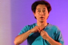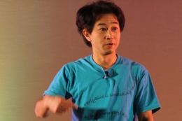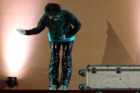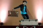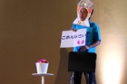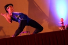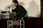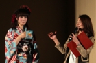 サンキュー手塚さん登場はロボットから。自己紹介、縣陵時代のエピソードなど語りも楽しく、あっという間にサンキュー手塚ペースにはまります。23年間やり続けているという十八番(オハコ) 、ホイットニーヒューストンの名曲 I Will Always Love Youに乗せての「梅干し」芸、在校生も引っ張り出してのパフォーマンスに、会場が揺れるほどの大爆笑。おかしくてカメラが手ぶれしてうまく撮影できないほどでした。とぼけた中にもあたたかみのある新作も披露され、世界をうならせる技、芸のすごさに感銘を受けました。