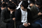 今年の愛のリレーを担当するのは39回卒業の皆さん。体育館後端の座席ではひさしぶりの再会を喜ぶ笑顔があふれていました。
